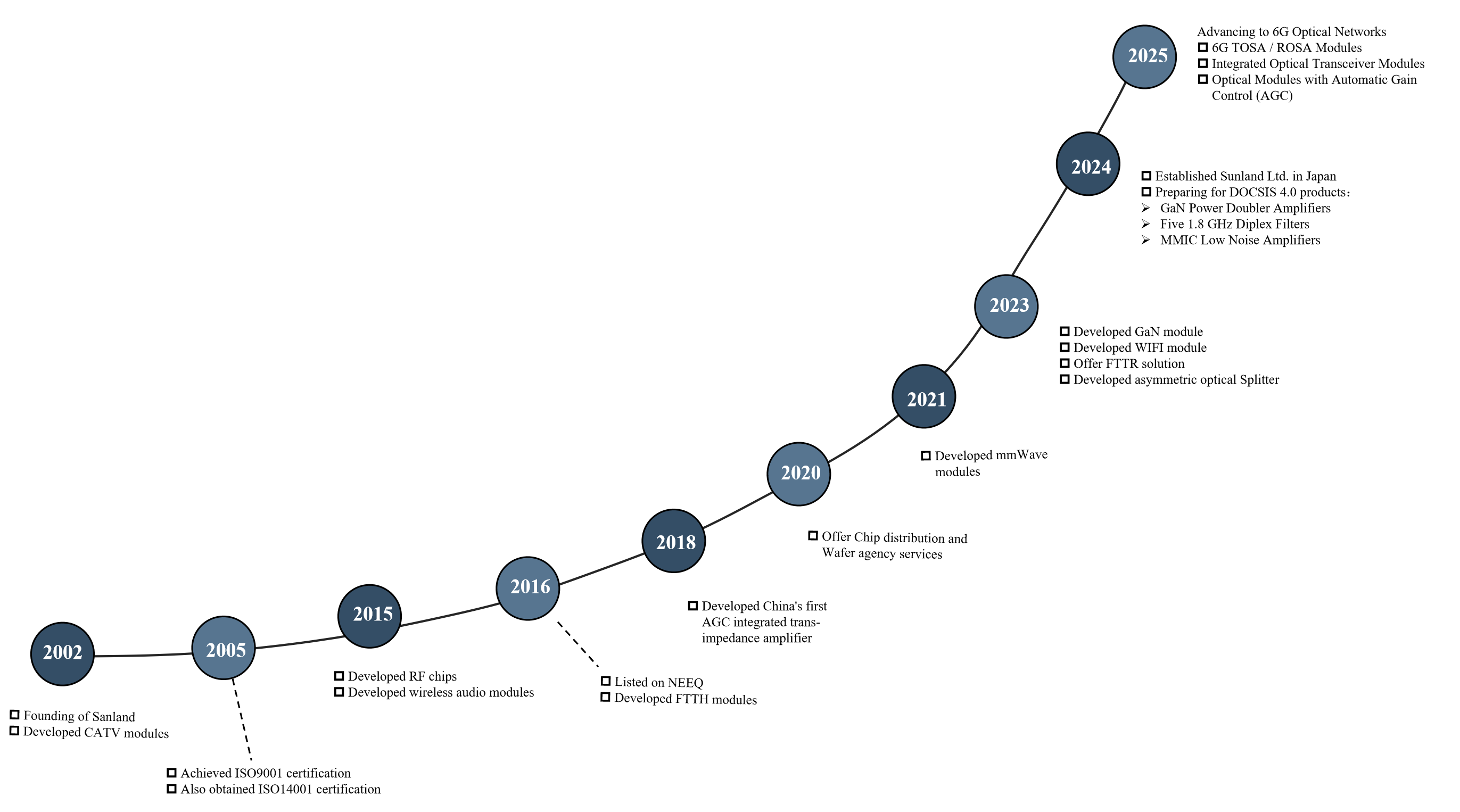 В компании Sanland работает ряд ведущих экспертов по проектированию радиочастотных микросхем и узлов кабельного телевидения, обладающих обширным опытом в проектировании и контроле качества радиочастотных микросхем и узлов кабельного телевидения. Каждый продукт, от усилителей до оптических приёмников, разработан с учётом надёжности и экологичности. Мы стремимся предлагать решения, которые выдерживают испытание временем и адаптируются к потребностям наших клиентов и меняющимся требованиям рынка.