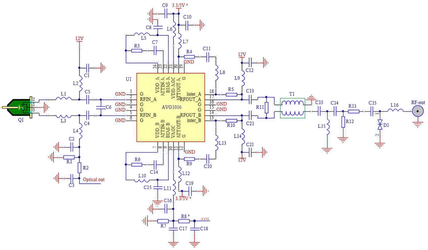 AVG1016 компании Sanland — это усилитель с переменным коэффициентом усиления. Аттенюатор, управляемый напряжением. Усилитель имеет высокую линейность и низкий уровень шума достигаются за счет использования 0,5 мкм Процесс GaAs E-PHEMT. Он размещен в миниатюрном корпусе размером 4,0 х. 24-контактный четырехконтактный корпус без вывода (QFN) диаметром 4,0 мм. Это предназначен для оптимального использования в диапазоне от 45 МГц до 1000 МГц. Компактность и низкий профиль в сочетании с высокой коэффициент усиления и высокая линейность делают AVG1018 идеальным выбором в качестве усилителя для сети CATV и сети FTTH.